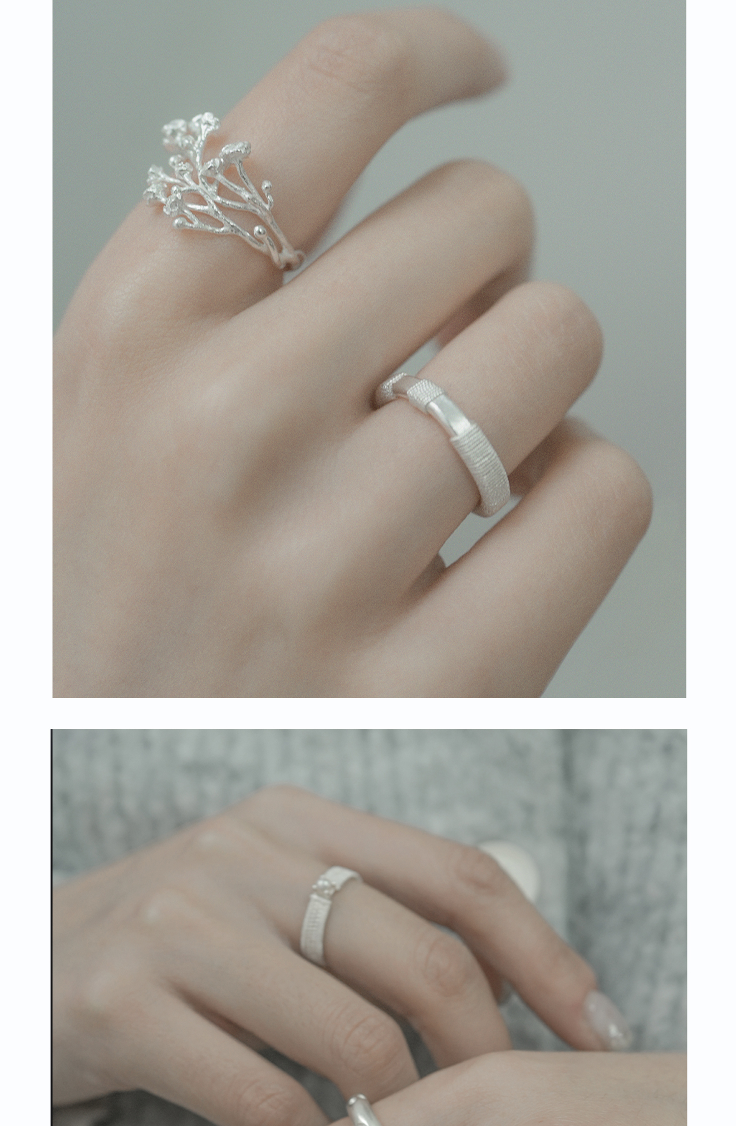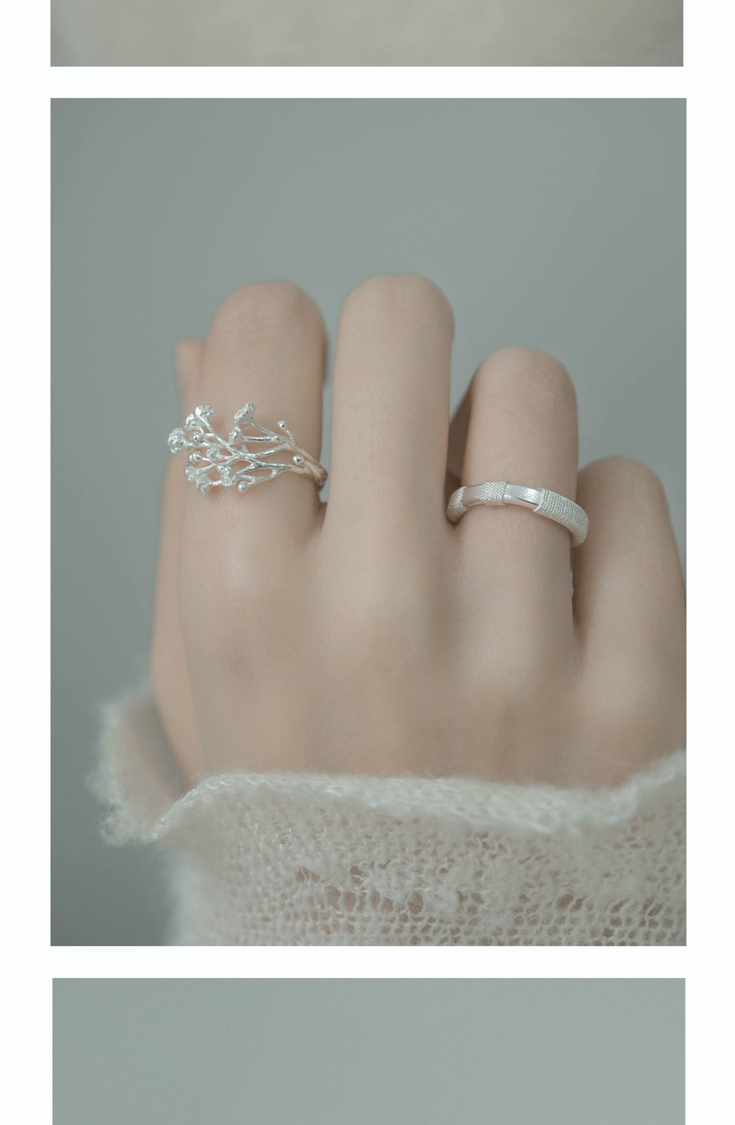 Bouquet of open - ended sterling silver rings