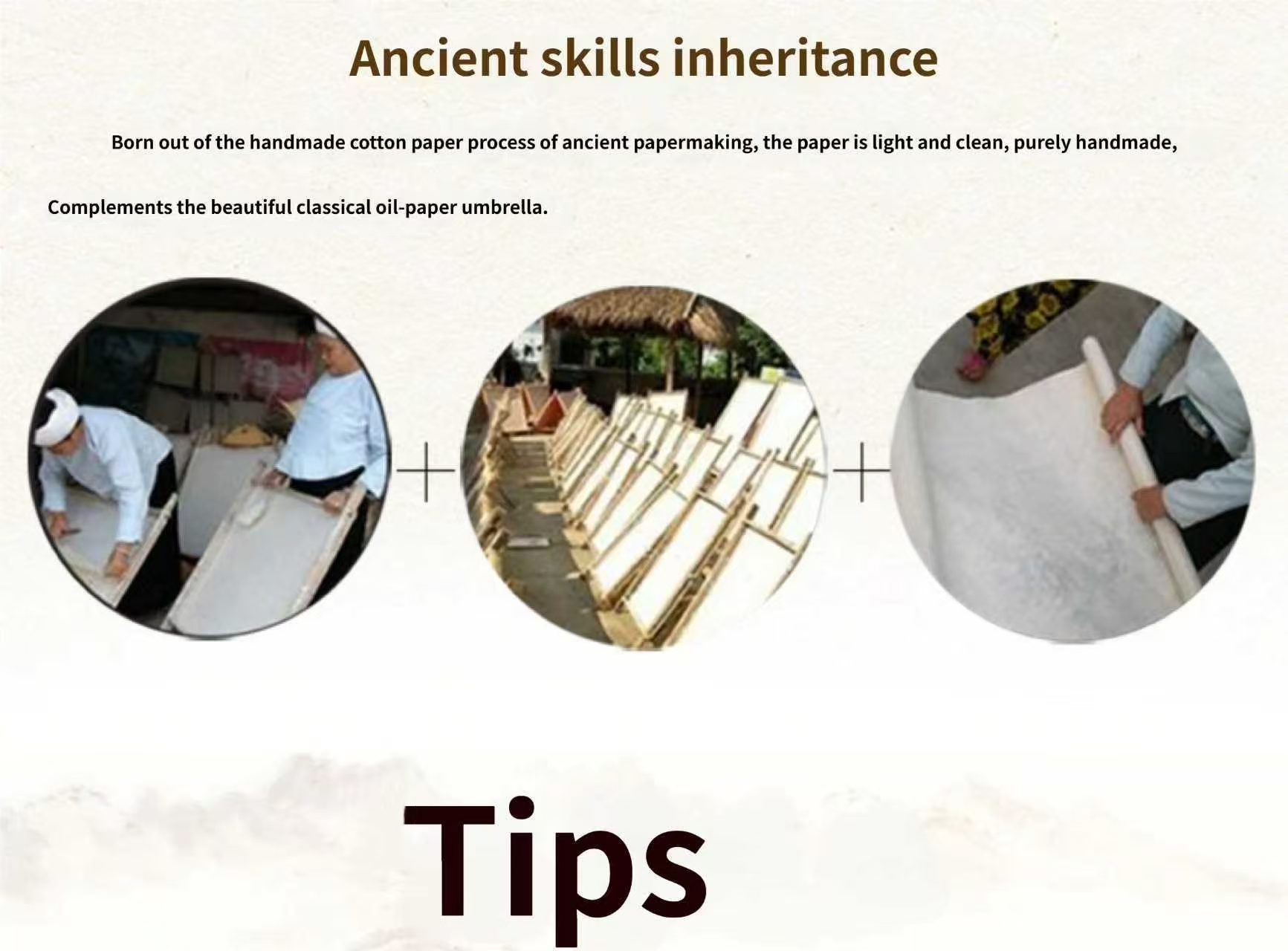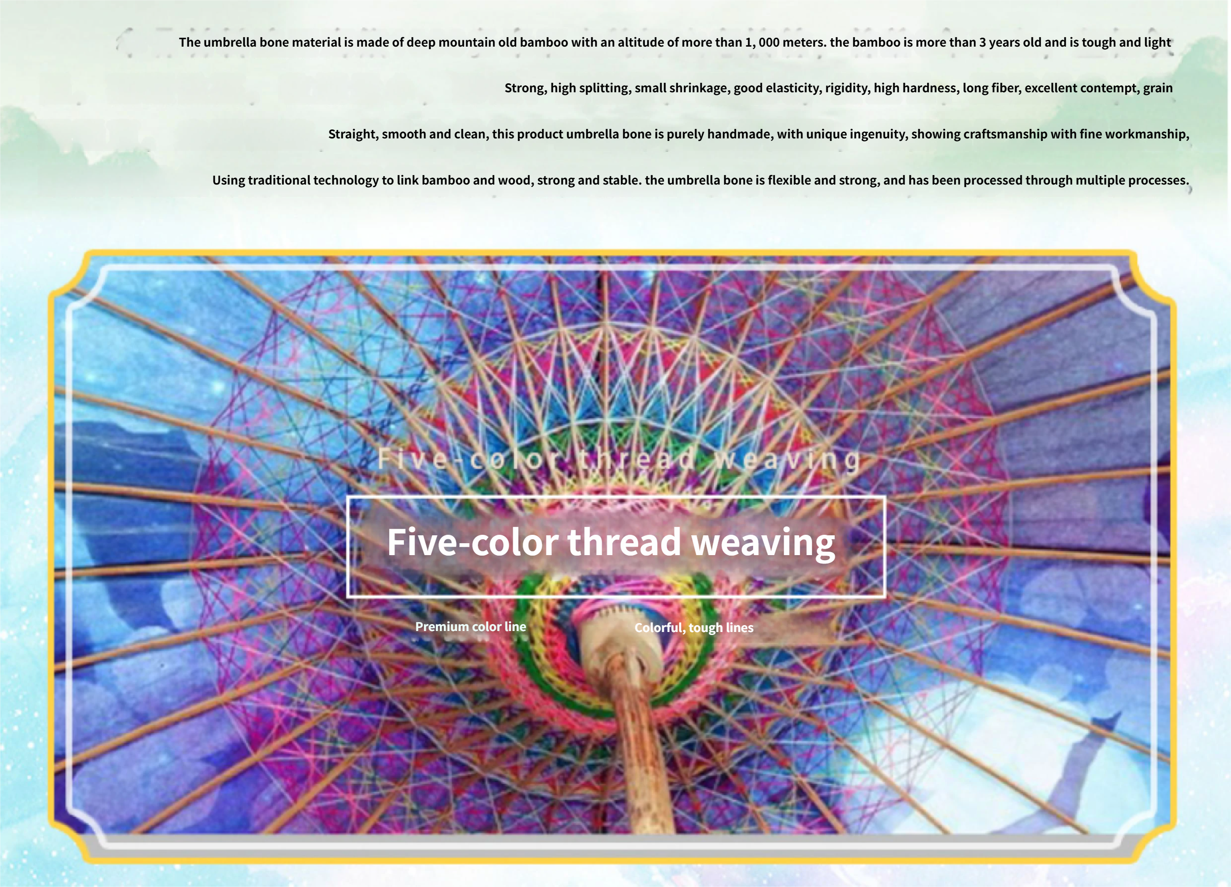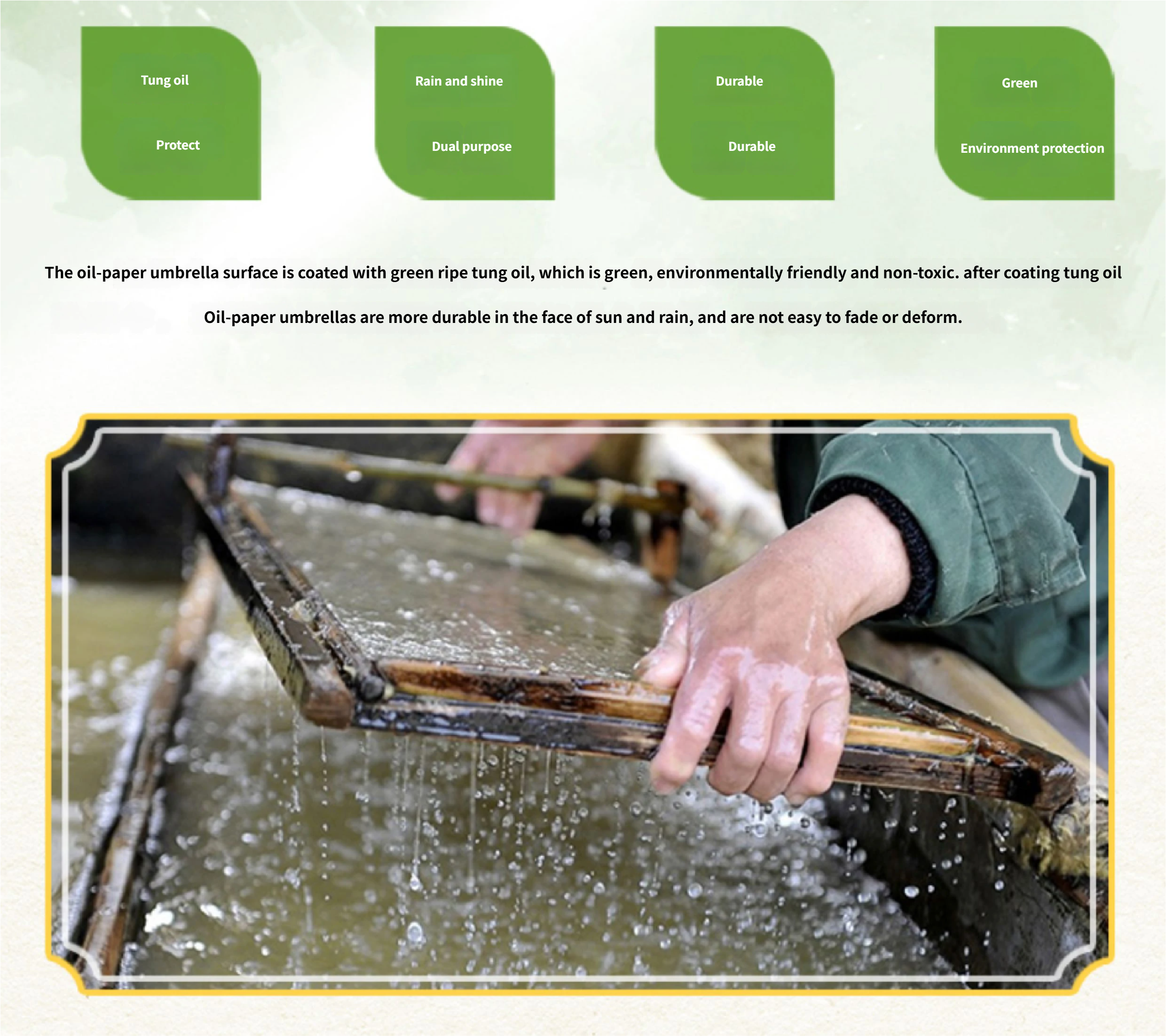 Intangible cultural heritage handmade oil-paper umbrellas for both sunny and rainy days